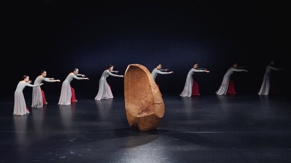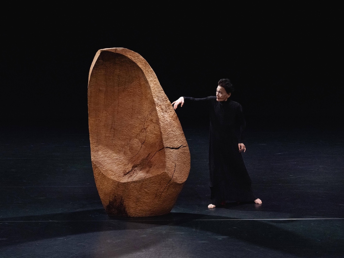 創作舞踊家の能藤玲子と、彫刻家の砂澤ビッキ。共に1931年北海道生まれのアーティストが、2026年に札幌市民交流プラザ クリエイティブスタジオの舞台上で共鳴し合う──。1月に上演された能藤玲子創作舞踊団「神の舌─夢の入口」は、砂澤の代表作の1つ《神の舌》を舞台美術として取り込んだ新作舞踊作品。能藤と砂澤は「風に聴く」(1986年初演、2017年、2019年再演)でもコラボレートしている。