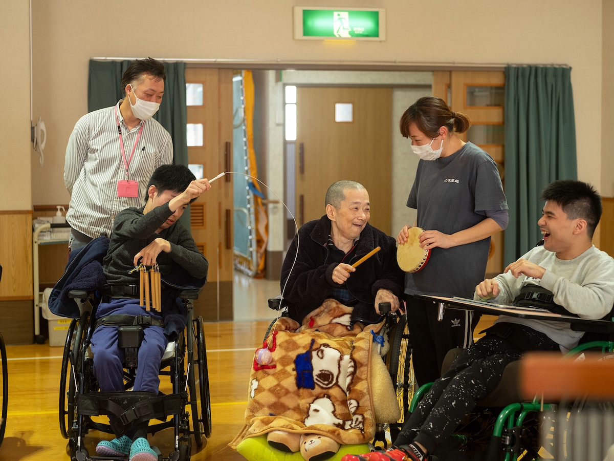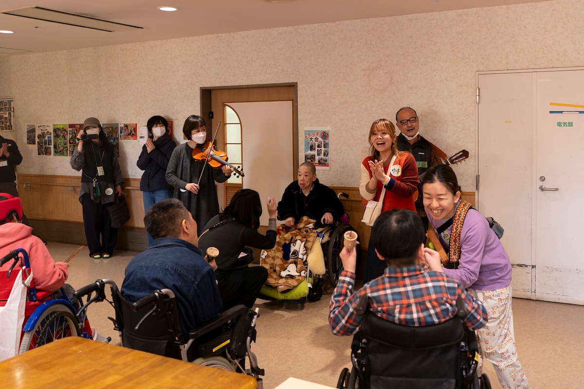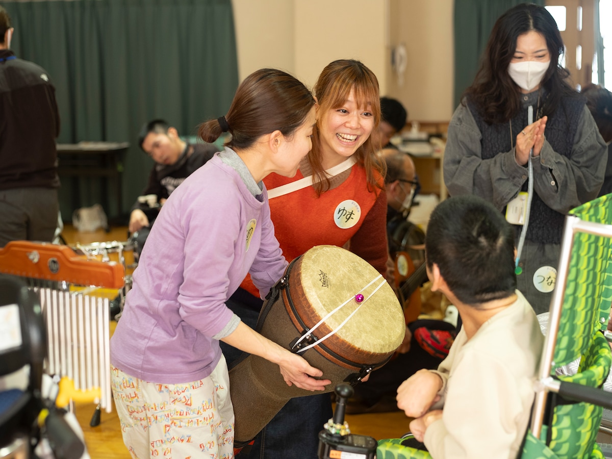 若鍋 同じ施設で継続してワークショップを行う中で、同じメンバーでも会うたびに新しい一面を見せてくださったり、興味が広がっていったりして、場の雰囲気も少しずつ変化していきます。だからこそ、ワークショップのやり方を固めすぎず、その場のやり取りの中で生まれるものを大事にしたいと思っていて。また、興味や楽しみ方は人それぞれで、打楽器を演奏することが好きな方もいれば、ギターの響きを聴くことが好きな方、一緒に歌うことを楽しむ方、音だけでなく触覚で味わう方もいます。そうした違いに応えられるように、さまざまなミュージシャンやダンサーの方に関わってもらい、自分たちの表現の幅を広げていきながら、参加者それぞれの“好き”にフィットするポイントを増やしていけたらいいなと思っています。